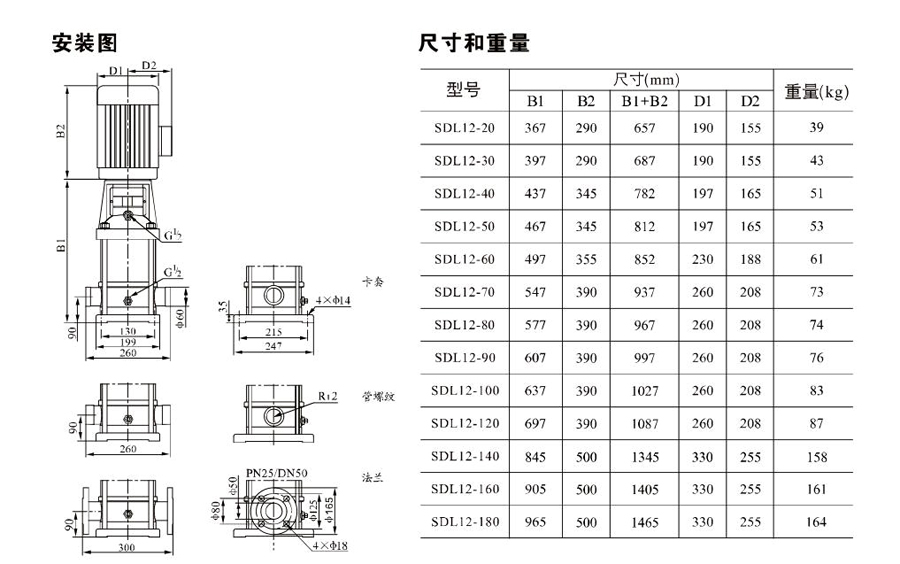 南元SDL12/SDLT12立式多級(jí)離心泵有不同的泵規(guī)格和不同級(jí)數(shù),以滿足所需的流量和壓力。