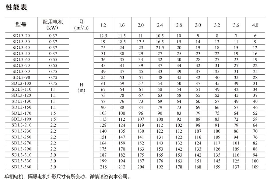 南元SDL3/SDLT3立式多級離心泵有不同的泵規(guī)格和不同級數(shù),以滿足所需的流量和壓力。