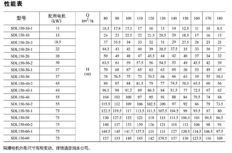 南元SDL150/SDLT150立式多級離心泵有不同的泵規格和不同級數,以滿足所需的流量和壓力。