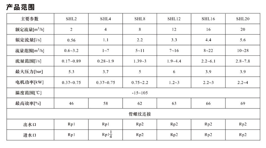SHL/SHF/SHFT16為臥式多級非自吸多級離心泵,配加長軸電機。緊湊式結構使泵尺寸很小,軸向入口或徑向出口。