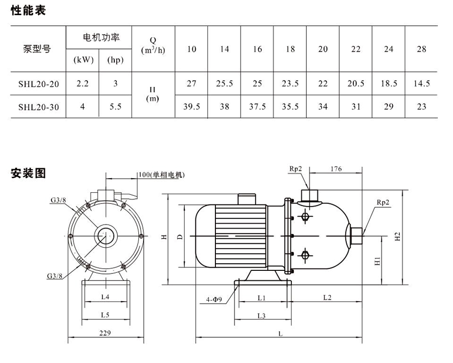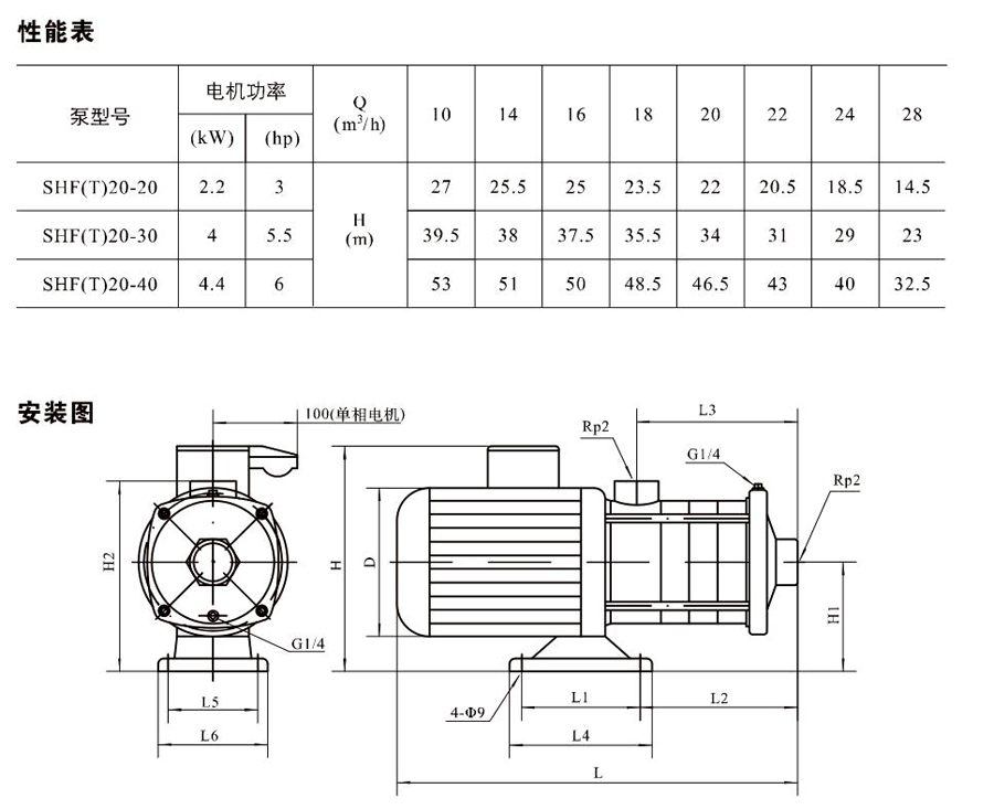 SHL/SHF/SHFT20為臥式多級(jí)非自吸多級(jí)離心泵,配加長(zhǎng)軸電機(jī)。緊湊式結(jié)構(gòu)使泵尺寸很小,軸向入口或徑向出口。