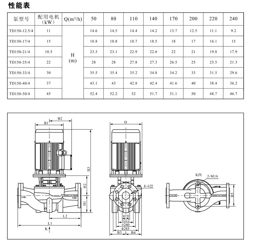 TD150系列單級(jí)管道離心泵,配有標(biāo)準(zhǔn)電機(jī)和機(jī)械密封。此類產(chǎn)品的結(jié)構(gòu)與相近類型產(chǎn)品相比,更不易受到泵送液體中雜質(zhì)的影響。產(chǎn)品設(shè)計(jì)為頂部可拉出的拆裝形式,其可以在不影響管路系統(tǒng)的情況下對(duì)泵進(jìn)行維修。所有泵采用創(chuàng)新式便拆式機(jī)械密封,更好機(jī)械密封無(wú)需拆卸電機(jī)。